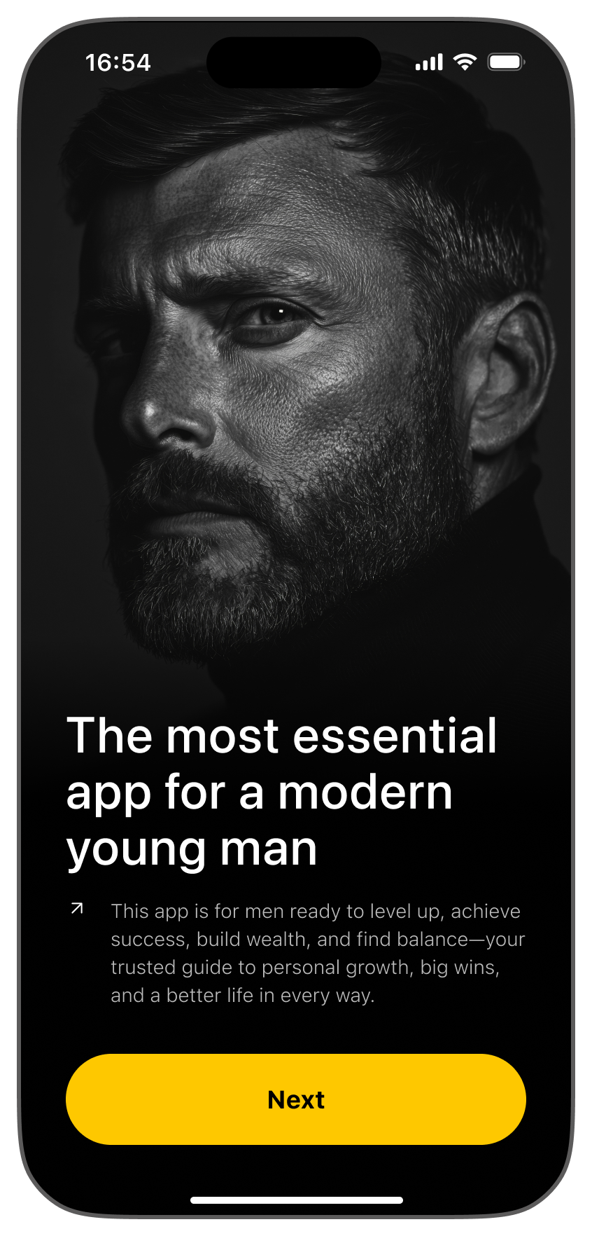 This app is for men ready to level up, achieve success, build wealth, and find balance. It's your trusted guide to personal growth, meaningful achievements, and life improvement in every area.